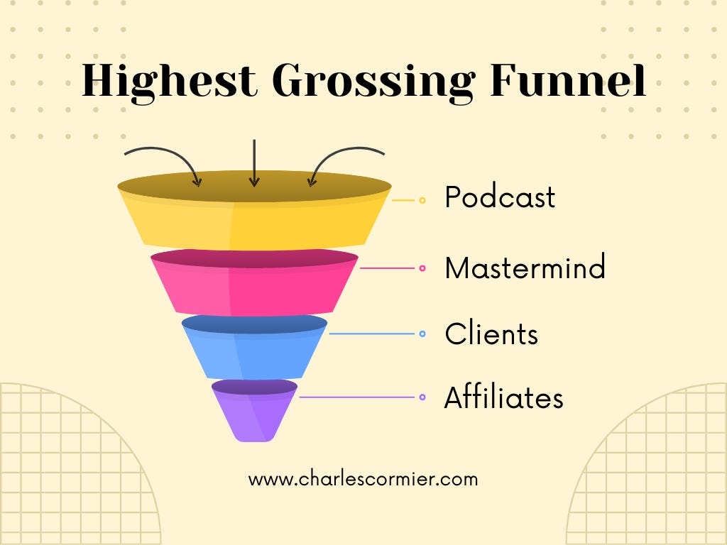 This is the direction lvl96.com will take. 30% of members become clients of mine. So it’s mastermind as a lead gen funnel, not masterminds as a monetizable product. For now, at least. I find that this hyperscales with my current funnel: