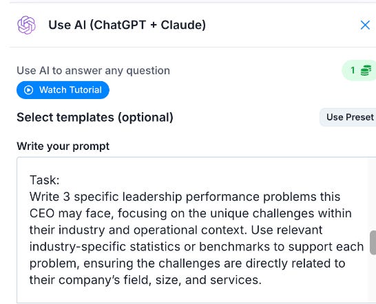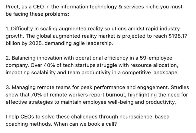 I used a 10k contacts list of mine on Apollo, 10k 5M+/yr CEOs with headcount growth of 15%/year.