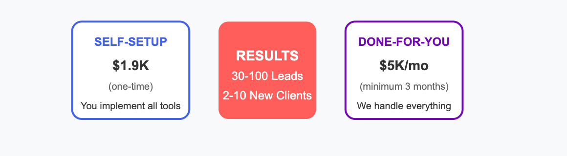 Done-For-You: $5K/month (3-month minimum). We handle everything from guest identification to closing clients.
